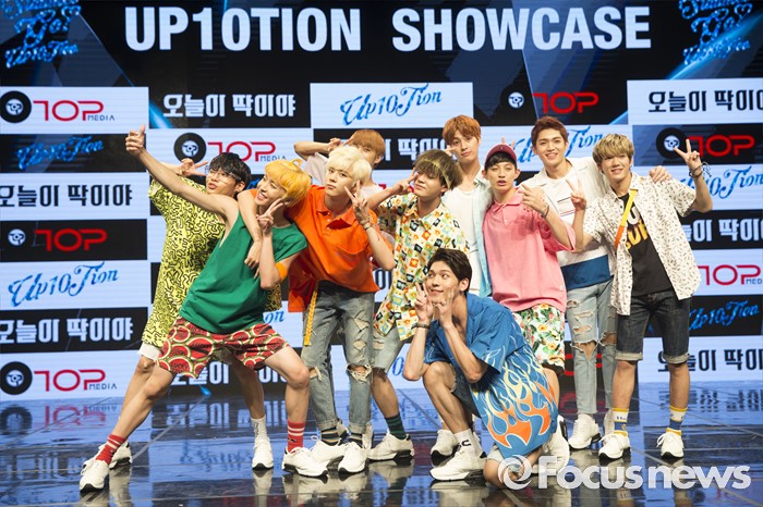 (서울=포커스뉴스) 4일 오후 서울 강남구 일지아트홀에서 열린 아이돌 그룹 업텐션의 미니앨범 'Summer go'발표 쇼케이스에 참석한 멤버들이 포토타임을 갖고 있다.