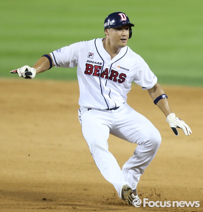 (서울=포커스뉴스) 4일 서울 잠실구장에서 열린 2016 프로야구 LG-두산 경기 6회말 무사 1,2루에서 런다운에 걸린 두산 1루주자 홍성흔이 태그를 피하고 있다.