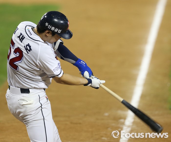 (서울=포커스뉴스) 4일 서울 잠실구장에서 열린 2016 프로야구 LG-두산 경기 8회말 2사 3루에서 두산 김재호가 동점 중전 안타를 날리고 있다.