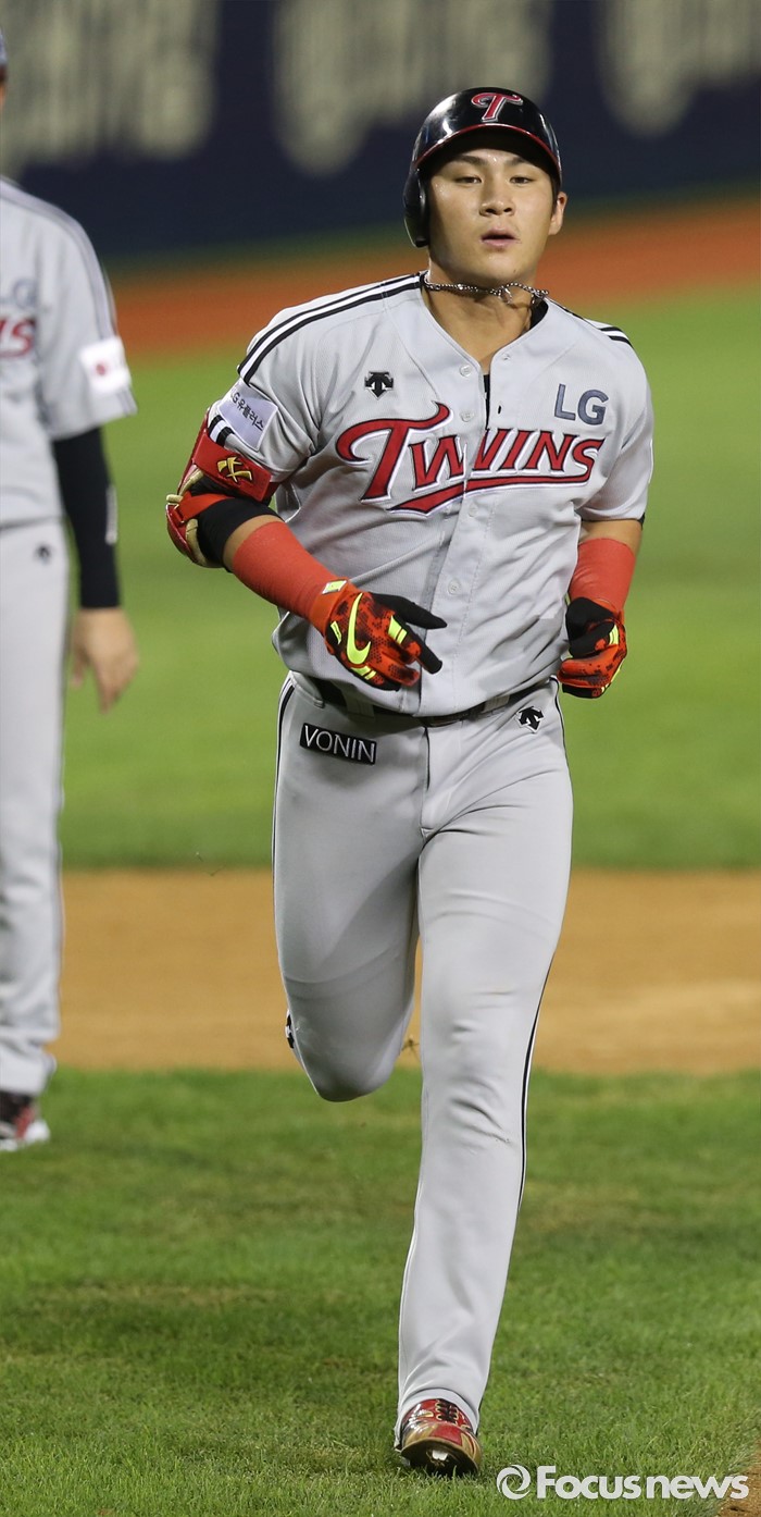 (서울=포커스뉴스) 4일 서울 잠실구장에서 열린 2016 프로야구 LG-두산 경기 연장 10회초 1사후 LG 오지환이 좌월 솔로 홈런을 치고 홈인하고 있다.