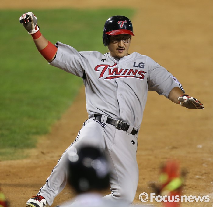 (서울=포커스뉴스) 4일 서울 잠실구장에서 열린 2016 프로야구 LG-두산 경기 연장 12회초 중전 안타로 진루한 LG 1루주자 박용택이 히메네스의 좌중간 2루타때 홈까지 뛰어 세이프되고 있다.