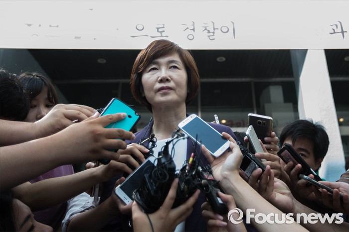 (서울=포커스뉴스) 5일 오전 최근 불거진 이화여대 사태와 관련해 서울 서대문경찰서를 찾아 탄원서를 제출한 최경희 이화여대 총장이 취재진과 인터뷰를 하고 있다. 최 총장은 이날 제출한 탄원서를 통해 지난 7월 28일 이후 발생한 학내 사태와 관련해 학생들 및 관련자들에 대한 사법처리를 원하지 않는다고 밝혔다.