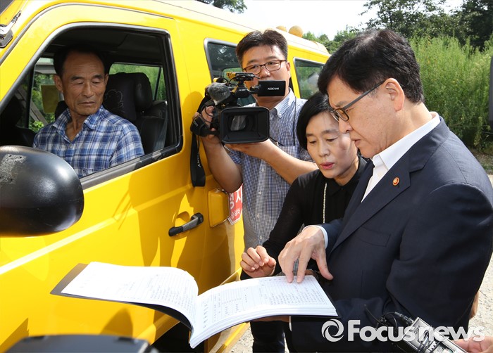 (세종=포커스뉴스) 정진엽 보건복지부 장관이 5일 오전 세종시 금남면 금남어린이집을 방문, 어린이통학차량 안전 점검을 하고 있다.