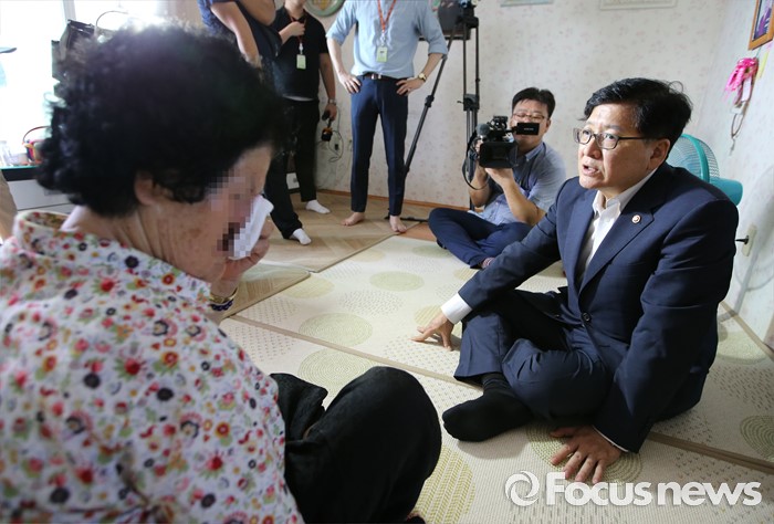 (세종=포커스뉴스) 정진엽 보건복지부 장관이 5일 오전 세종시 금남면에서연이은 폭염으로 무더위에 취약한 독거노인들의 어려움을 점검하고 애로사항을 청취하고 있다.