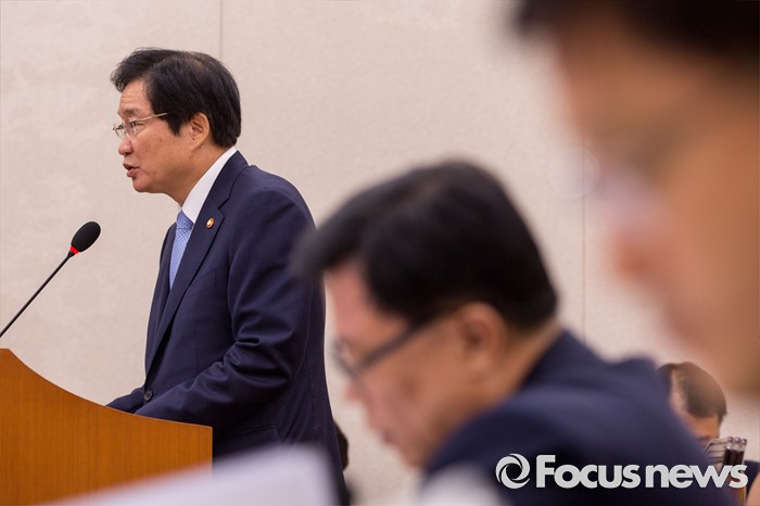 (서울=포커스뉴스) 김영석 해양수산부 장관 5일 오전 서울 여의도 국회에서 열린 국회 농림축산식품해양수산위원회 전체회의에 참석해 추가경정예산 편성관련 보고를 하고 있다.