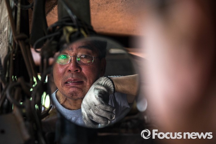 (서울=포커스뉴스) 서울이 낮 최고 36도를 기록하는 등 전국적으로 불볕더위가 기승을 부리는 5일 오전 서울 은평구 수색동에 위치한 형제대장간에서 류상준(63)씨가 화덕 앞에서 건설용 공구를 만드는 작업을 하던 중 흐르는 땀을 닦고 있다.