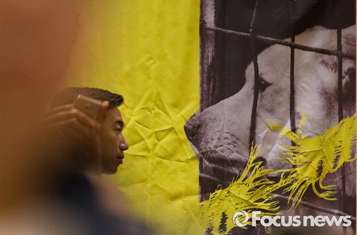 (서울=포커스뉴스) 5일 오전 서울 종로구 서울역사박물관에서 열린 개 식용 종식을 위한 국제컨퍼런스에서 개 식용 근절을 위한 포스터가 부착돼 있다.