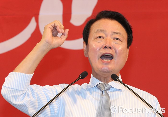 (천안=포커스뉴스) 5일 오후 충남 천안시 유관순체육관에서 열린 새누리당 대표 및 최고위원 선출 충청권 합동연설회에서 당 대표에 출마한 한선교 후보가 정견발표를 하고 있다.