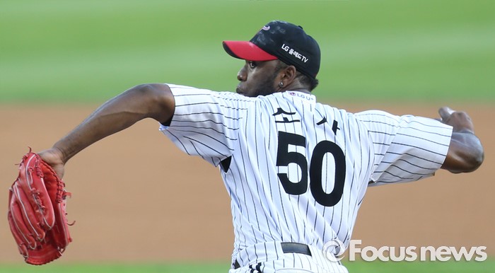 (서울=포커스뉴스) 5일 서울 잠실구장에서 열린 2016 프로야구 kt-LG 경기에서 1회초 LG 선발투수 소사가 투구하고 있다.