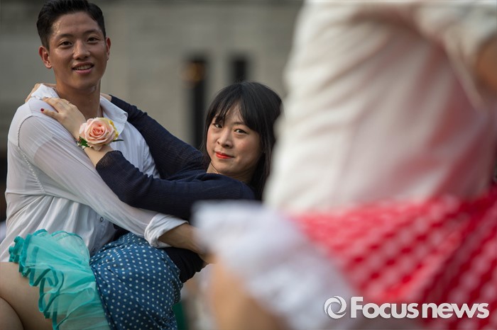 (서울=포커스뉴스) 6일 오후 서울 중구 시청 앞 광장에서 열린 '서울 스윙댄스 페스티벌'에서 청년문화예술단체 딴따라땐스홀 회원들이 음악에 맞춰 스윙댄스를 추고 있다.