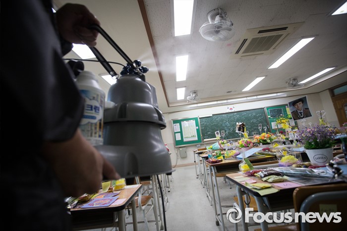 (안산=포커스뉴스) 세월호참사 이후 새로운 교육을 위한 사회적 합의에 따라 6일 오후 경기도 안산시 단원고등학교에서 교실 이전을 위한 준비 작업으로 물품 소독을 하고 있다.