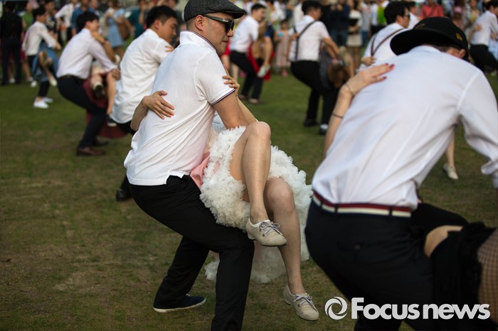 (서울=포커스뉴스) 6일 오후 서울 중구 시청 앞 광장에서 열린 '서울 스윙댄스 페스티벌'에서 청년문화예술단체 딴따라땐스홀 회원들이 음악에 맞춰 스윙댄스를 추고 있다.