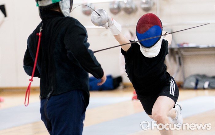 신아람은 연장에서 16초를 남기고 실점하며 16강 진출에 실패했다.(서울=포커스뉴스) 15일 오전 서울 노원구 태릉선수촌에서 펜싱 국가대표 신아람이 훈련에 열중하고 있다. 2016.07.15 김인철 기자