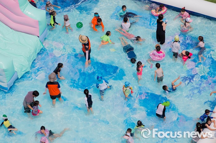 (서울=포커스뉴스) 절기상 입추인 7일 오후 서울 종로구 광화문 세종대로에 설치된 물놀이장에서 어린이들이 즐거운 시간을 보내고 있다.