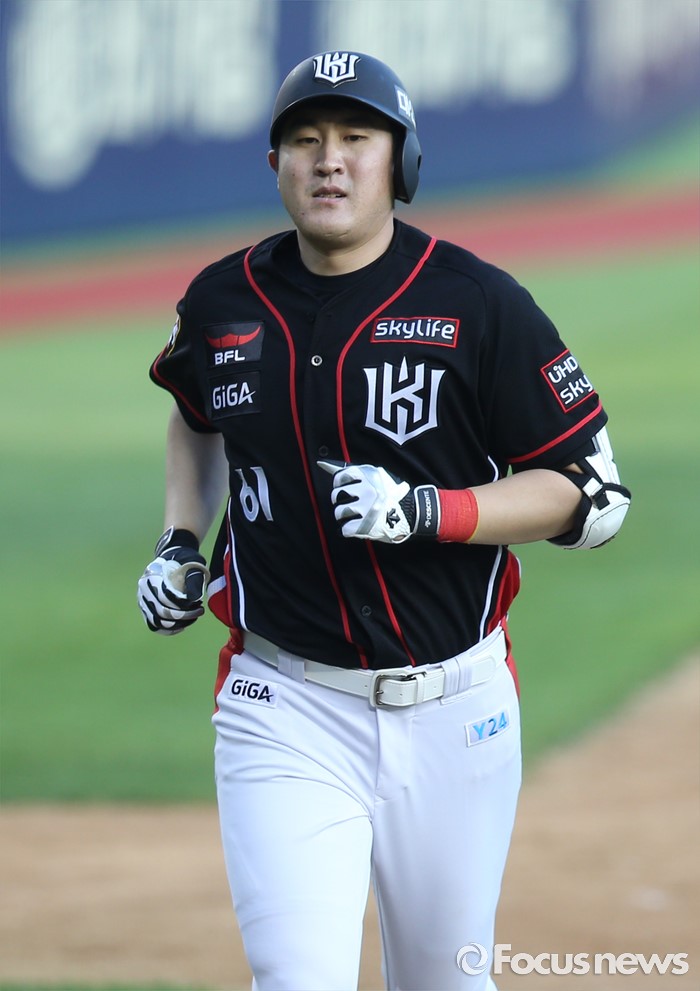 (서울=포커스뉴스) 5일 서울 잠실구장에서 열린 2016 프로야구 kt-LG 경기 3회초 2사 1루에서 kt 유한준이 좌월 2점 홈런을 치고 홈인하고 있다.
