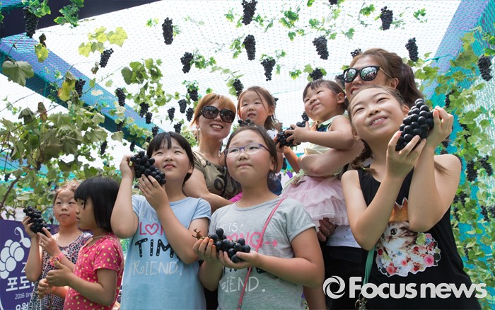(서울=포커스뉴스) 8일 오전 서울 광화문광장에서 열린 '2016 포도데이' 행사에 참석한 시민들이 포도를 들고 포즈를 취하고 있다.