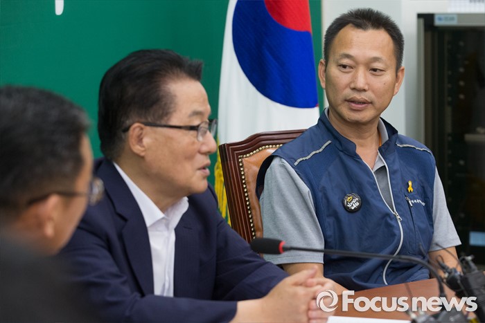 (서울=포커스뉴스) 박지원(가운데) 국민의당 비상대책위원장이 8일 오후 서울 여의도 국회에서 김주업(오른쪽) 전국공무원노조 위원장 등 관계자들과 면담을 하고 있다.