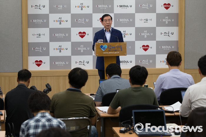 (서울=포커스뉴스) 박원순 서울시장이 8일 오후 서울 중구 서울시청 브리핑룸에서 열린 청년수당과 관련한 박근혜 대통령과 면담을 요청하는 기자회견에서 취재진의 질문에 답하고 있다.