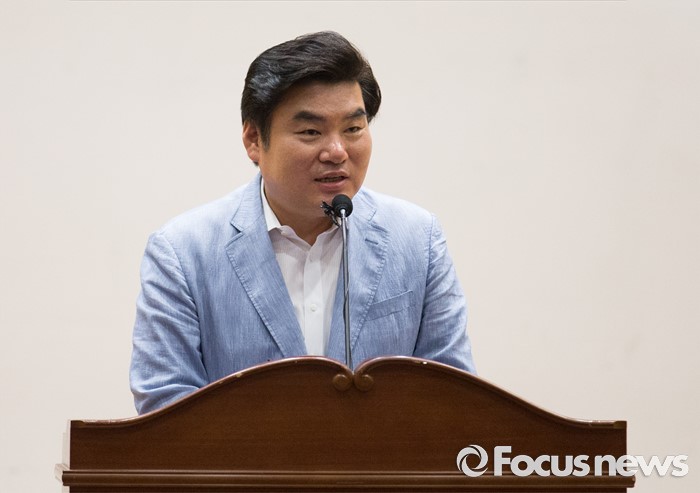 (서울=포커스뉴스) 원유철 새누리당 의원이 8일 오후 서울 여의도 국회 의원회관에서 열린 공간정보 국외 반출 관련 정책 토론회에 참석해 축사하고 있다.