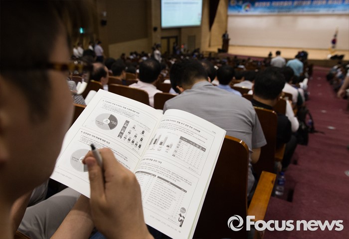 (서울=포커스뉴스) 8일 오후 서울 여의도 국회 의원회관에서 열린 공간정보 국외 반출 관련 정책 토론회에서 한 참석자가 발표자료를 바라보며 토론회를 경청하고 있다.