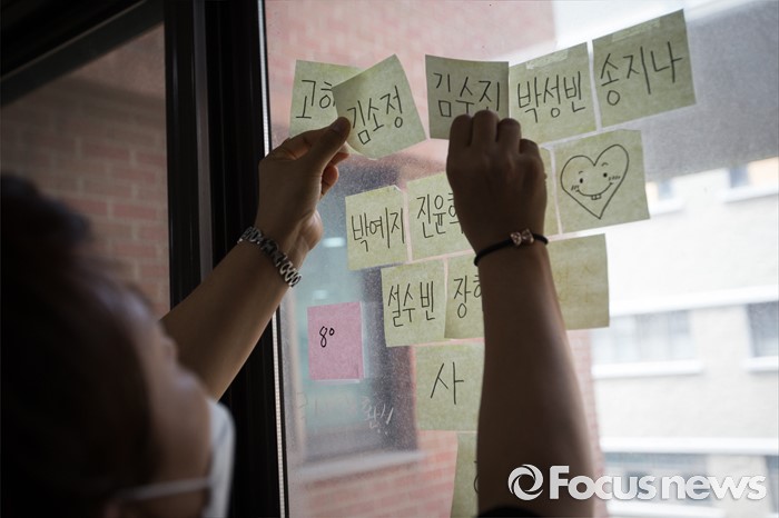 | △ 이전하는 교실, 아이들 이름 떼는 봉사자들 |