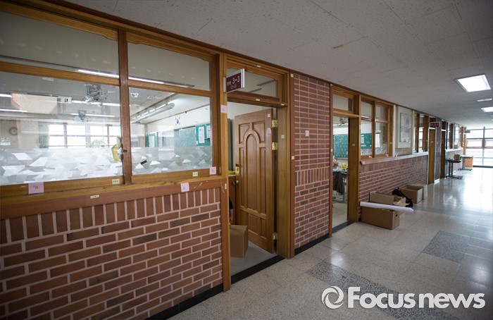 (안산=포커스뉴스) 세월호 참사에서 희생된 단원고등학교 학생들의 교실 이전 절차가 시작된 8일 오후, 경기도 안산시 단원고등학교 기억교실 복도에 종이 유물들이 정리된 모습이 보이고 있다.