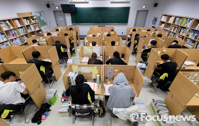 (안성=포커스뉴스) 2017학년도 대학수학능력시험을 101일 앞둔 8일 오후 경기도 안성종로기숙학원에서 재수생들이 자습을 하고 있다.