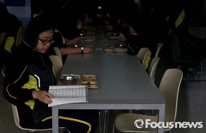 (안성=포커스뉴스) 2017학년도 대학수학능력시험을 101일 앞둔 8일 오후 경기도 안성종로기숙학원에서 재수생들이 석식을 먹으며 복습하고 있다.