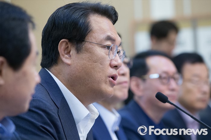 (서울=포커스뉴스) 9일 오전 서울 여의도 국회 귀빈식당에서 열린 2017년도 예산 당정협의에 참석한 정진석 새누리당 원내대표가 인사말을 하고 있다.