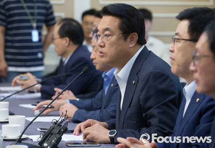 (서울=포커스뉴스) 9일 오전 서울 여의도 국회 귀빈식당에서 열린 2017년도 예산 당정협의에 참석한 정진석 새누리당 원내대표가 인사말을 하고 있다.