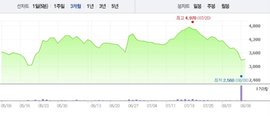 한편, 한국거래소는 8일 소리바다에 최대주주 지분 매각설의 사실 여부와 구체적인 내용에 대한 조회공시를 요구했다. 답변 시한은 이날 낮 12시까지다.주가흐름<사진출처=네이버 캡쳐>
