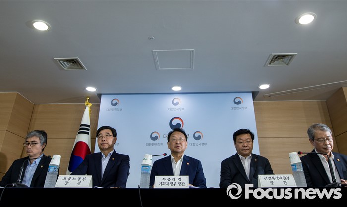 (서울=포커스뉴스) 9일 오전 정부서울청사에서 열린 '2016년 추경예산안 국회 조기통과' 관련 합동브리핑에 참석한 유일호(가운데) 경제부총리 겸 기획재정부 장관이 호소문을 발표하고 있다.