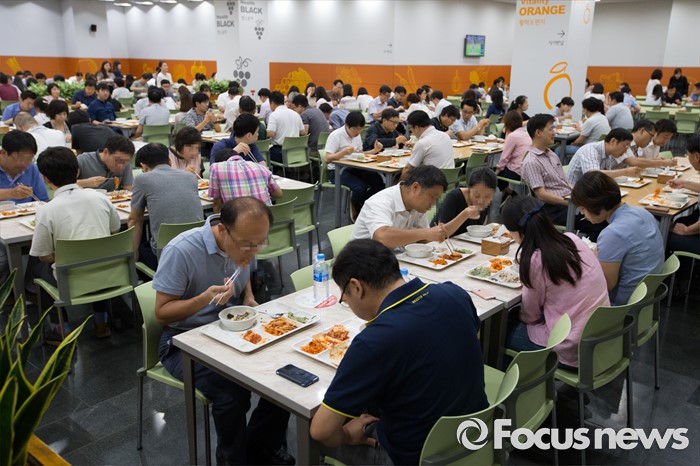 (서울=포커스뉴스) 수도권 대부분 지역에 엿새째 폭염경보가 내려진 9일 오전 서울 중구 한 구내식당이 직원들로 붐비고 있다.