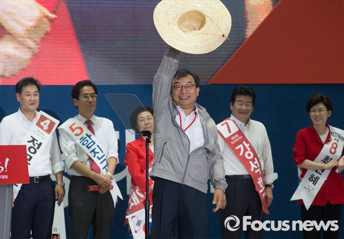 (서울=포커스뉴스) 9일 오후 서울 송파구 잠실실내체육관에서 열린 새누리당 4차 전당대회에 참석한 이정현 당대표 후보가 입장하고 있다.