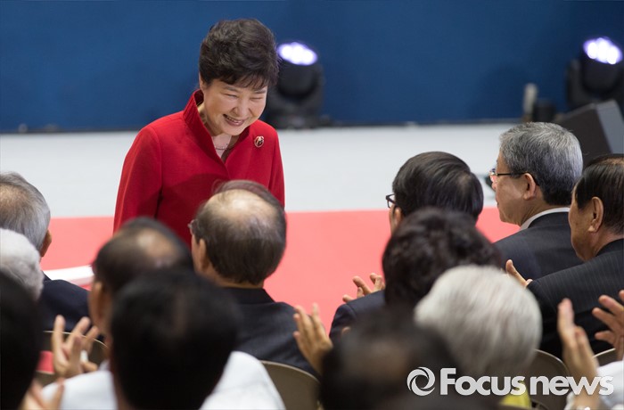 (서울=포커스뉴스) 박근혜 대통령이 9일 오후 서울 송파구 잠실실내체육관에서 열린 새누리당 4차 전당대회에 참석해 당원들을 향해 인사하고 있다.