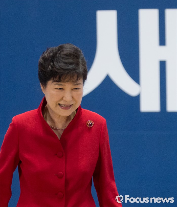 (서울=포커스뉴스) 박근혜 대통령이 9일 오후 서울 송파구 잠실실내체육관에서 열린 새누리당 4차 전당대회에 참석해 축사를 마친 뒤 이동하고 있다.
