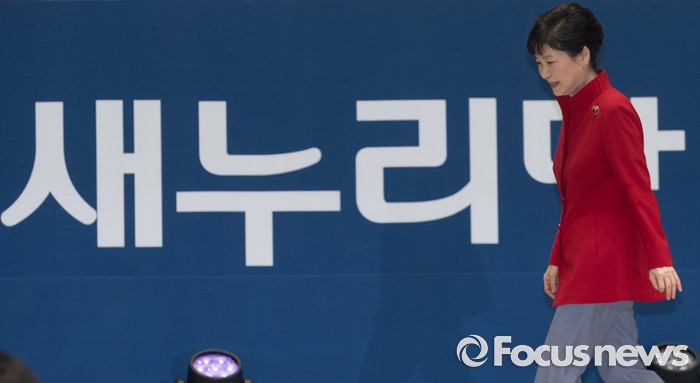 (서울=포커스뉴스) 박근혜 대통령이 9일 오후 서울 송파구 잠실실내체육관에서 열린 새누리당 4차 전당대회에 참석해 축사를 마친 뒤 이동하고 있다.