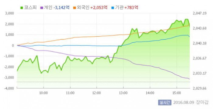 9일 코스피지수는 전일 대비 0.62%(12.66포인트) 오른 2043.78에 장을 마쳤다. 코스닥지수는 전날 보다 0.62%(4.30포인트) 상승한 700.73에 마감했다.