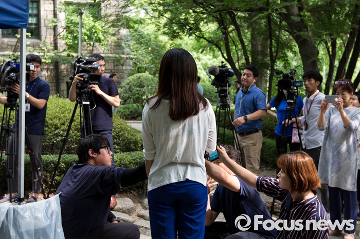 (서울=포커스뉴스) 평생교육 단과대학, 경찰 투입 등의 이유로 총장 사퇴를 요구한 이화여자대학교 학생측이 9일 오후 서울 마포구 이화여자대학교 본관 옆에서 학교측의 사퇴 거부에 대한 입장을 밝히고 있다. 학생측은 9일 오후 3시까지 총장이 사퇴 안 할 경우 10일 총 시위를 예고한 바 있다.
