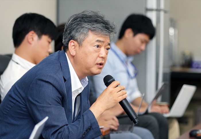 (세종=포커스뉴스) 이인호 산업통상자원부 통상차관보가 9일 오후 세종시 정부세종청사 산업부 기자실에서 금일 오전 개최한 수입규제 대응 간담회에서 논의된 수입규제 동향 및 효과적인 대응방안에 대한 브리핑을 하고 있다. <사진제공=산업통상자원부>