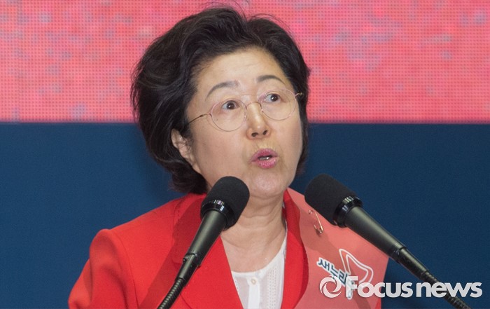(서울=포커스뉴스) 9일 오후 서울 송파구 잠실실내체육관에서 열린 새누리당 4차 전당대회에 참석한 이은재 최고위원 후보가 정견발표를 하고 있다.