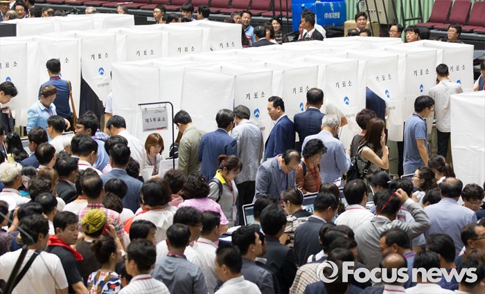 (서울=포커스뉴스) 9일 오후 서울 송파구 잠실실내체육관에서 열린 제4차 새누리당 전당대회에서 당원들이 당대표 및 최고위원을 선출하기 위해 투표를 하고 있다.