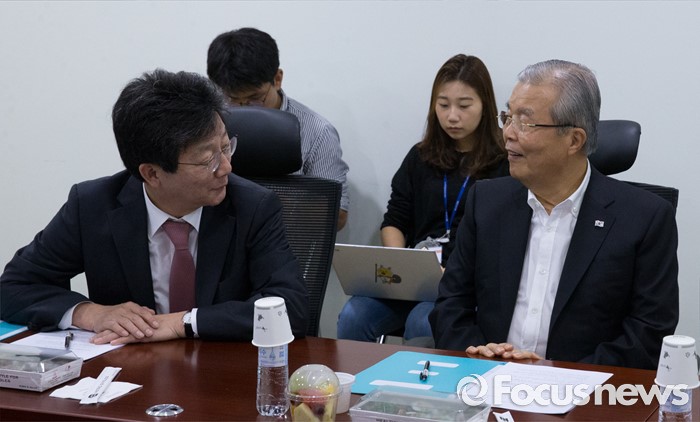(서울=포커스뉴스) 10일 오전 서울 여의도 국회 의원회관에서 열린 '어젠다(Agenda) 2050' 회의에 참석한 유승민(왼쪽) 새누리당 의원과 김종인 더불어민주당 비대위 대표가 대화하고 있다.