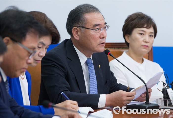 (서울=포커스뉴스) 10일 오전 서울 여의도 국회에서 열린 더불어민주당 비상대책위원회의에 참석한 이개호 비대위원이 발언하고 있다.