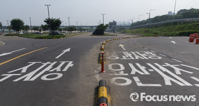 (서울=포커스뉴스) 10일 오전 서울 서초구 세빛섬 주차장 부근에 올림픽도로에서 서초·용산 방향으로 연결하는 도로가 개통되어 있다.