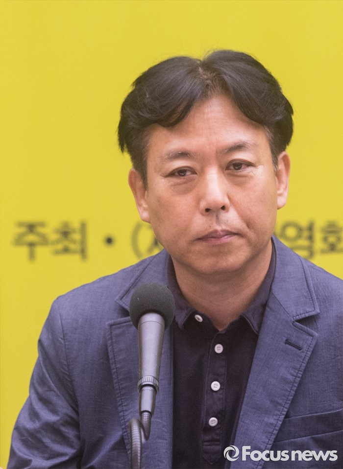 (서울=포커스뉴스) 10일 오전 서울 중구 프레스센터에서 열린 '한국영화아카데미 장편과정 10주년 카파 십세전' 기자간담회에 참석한 김의석 조직위원이 취재진을 바라보고 있다.