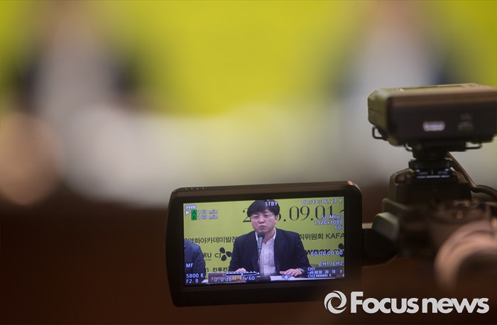 (서울=포커스뉴스) 10일 오전 서울 중구 프레스센터에서 열린 '한국영화아카데미 장편과정 10주년 카파 십세전' 기자간담회에 참석한 유영식 조직위원장이 인사말을 하고 있다.