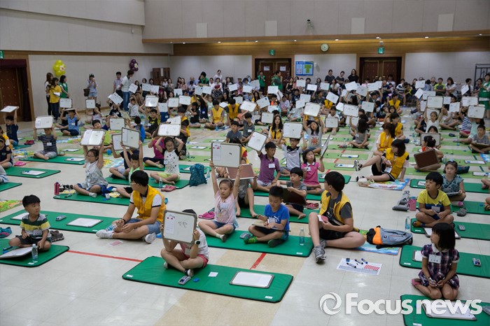 (서울=포커스뉴스) 10일 오전 서울 성동구 성동구청 대강당에서 열린 '성동 어린이 독서 골든벨'에서 초등학생들이 문제를 풀고 있다.