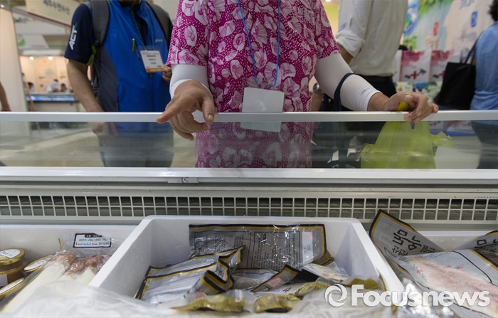 (서울=포커스뉴스) 10일 오후 서울 강남구 코엑스에서 열린 '2016 한가위 명절선물상품전'을 찾은 시민들이 수산물 선물세트를 둘러보고 있다.
