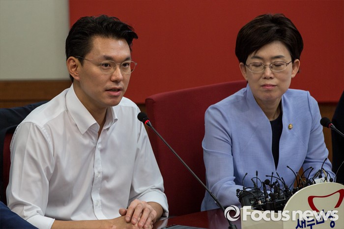 (서울=포커스뉴스) 유창수(왼쪽) 새누리당 최고위원이 10일 오전 서울 여의도 새누리당사에서 열린 최고위원회의에 참석해 모두발언 하고 있다.